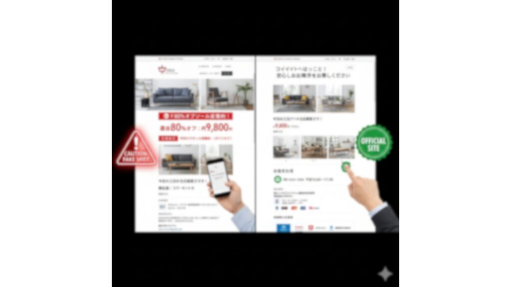 評判とは別に、消費者として絶対に避けなければならない深刻な問題が「偽サイト(詐欺サイト)」の存在です。