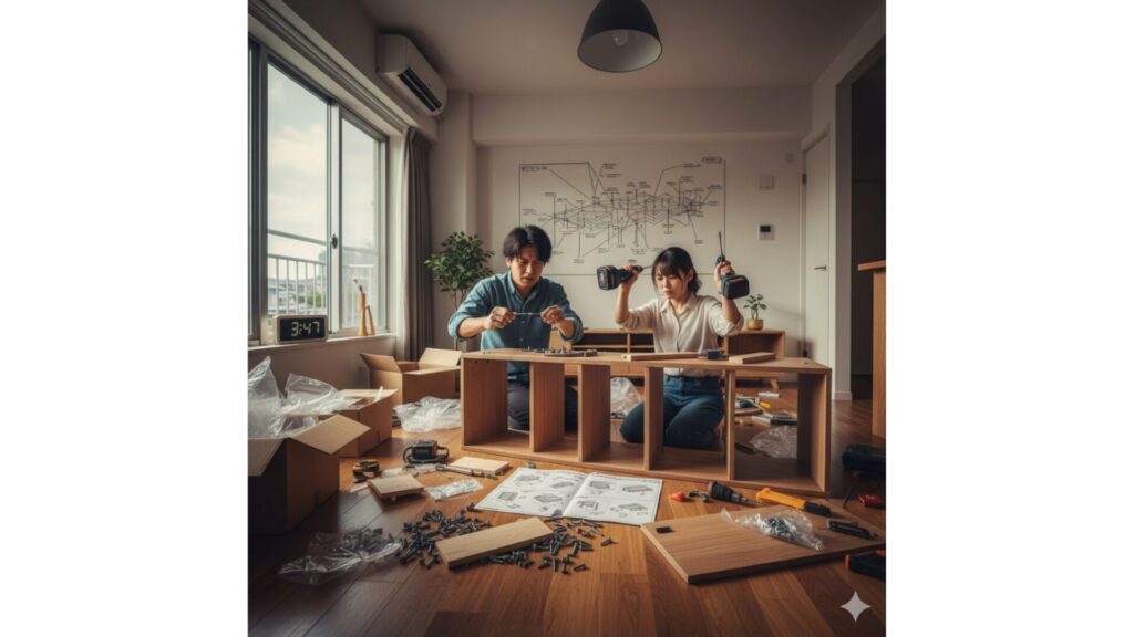 ソファやベッド、大型の棚などの家具は、部品一つ一つが大きく重いため、安全のためにも一人での組み立ては原則として避けるべきです。必ず2人以上で作業する前提で考えましょう。