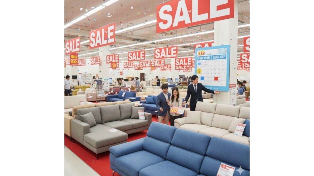 もし急ぎでなければ、少しでもお得に買える時期を狙うのも賢い手です。家具業界の動きとして、狙い目は大きく分けて2回あります。