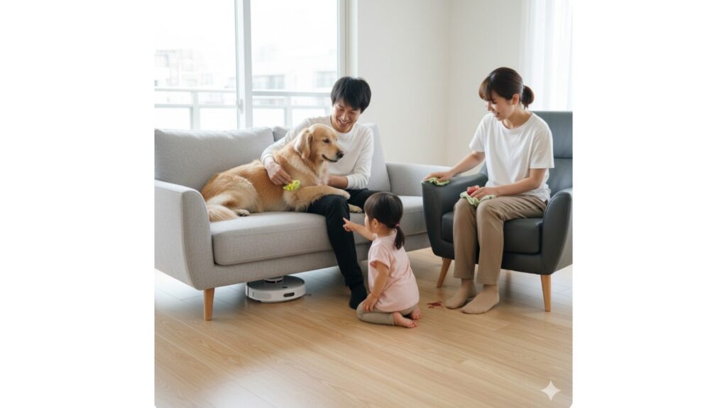 小さなお子さんや、大切な家族であるワンちゃん・ネコちゃんと暮らす場合、「デザインのおしゃれさ」よりも「安全性」と「メンテナンス性」が最優先事項になります。