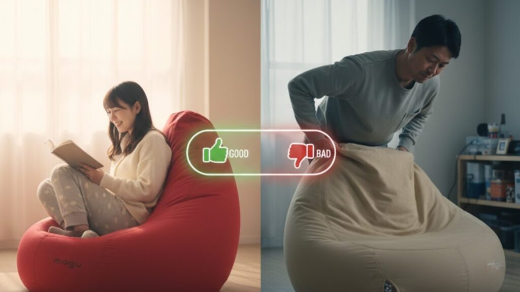 良い評価の多くは、「唯一無二の座り心地」と、ビーズクッションらしからぬ「優れた安定感」に集中しています。体を預けた瞬間のフィット感や、ソファが置けない部屋での代替品としての優秀さ、そして移動の容易さなどが高く評価されていました。