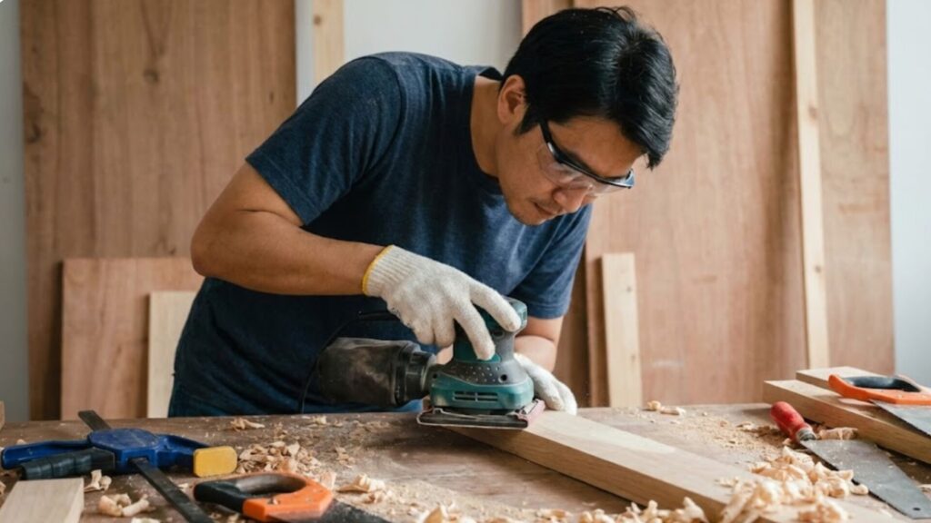 - 構造的な補強: もしグラつきがひどい場合は、脚と脚の間を繋ぐ「貫(ぬき)」と呼ばれる横木を追加するか、天板と脚の接合部にL字アングルを追加して補強してください。