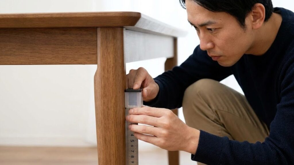 計算だけでは不安な場合は、家にある雑誌や本をテーブルの脚の下に積み重ねて、実際に座ってシミュレーションしてみましょう。「あ、この高さが楽だな」と感じる高さをメジャーで測り、そこから逆算して必要な継ぎ足し幅を決めると失敗がありません。