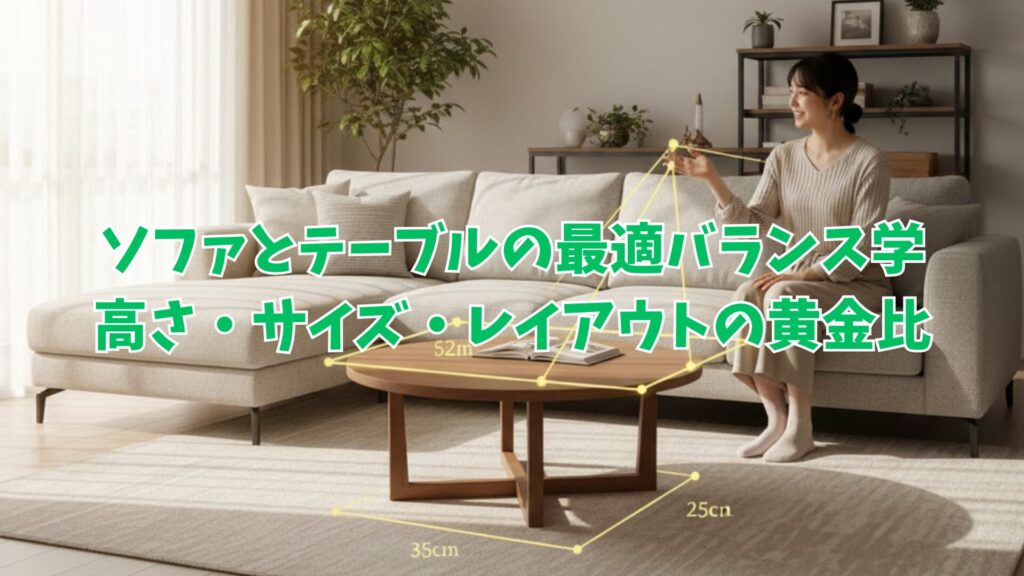 まずは、ソファでくつろぐ「リビングシーン」です。ここでのテーブル(ローテーブル)選びは、検索すると情報が錯綜しがちな、一番悩ましいポイントかもしれません。その「矛盾」をひも解いていきましょう。